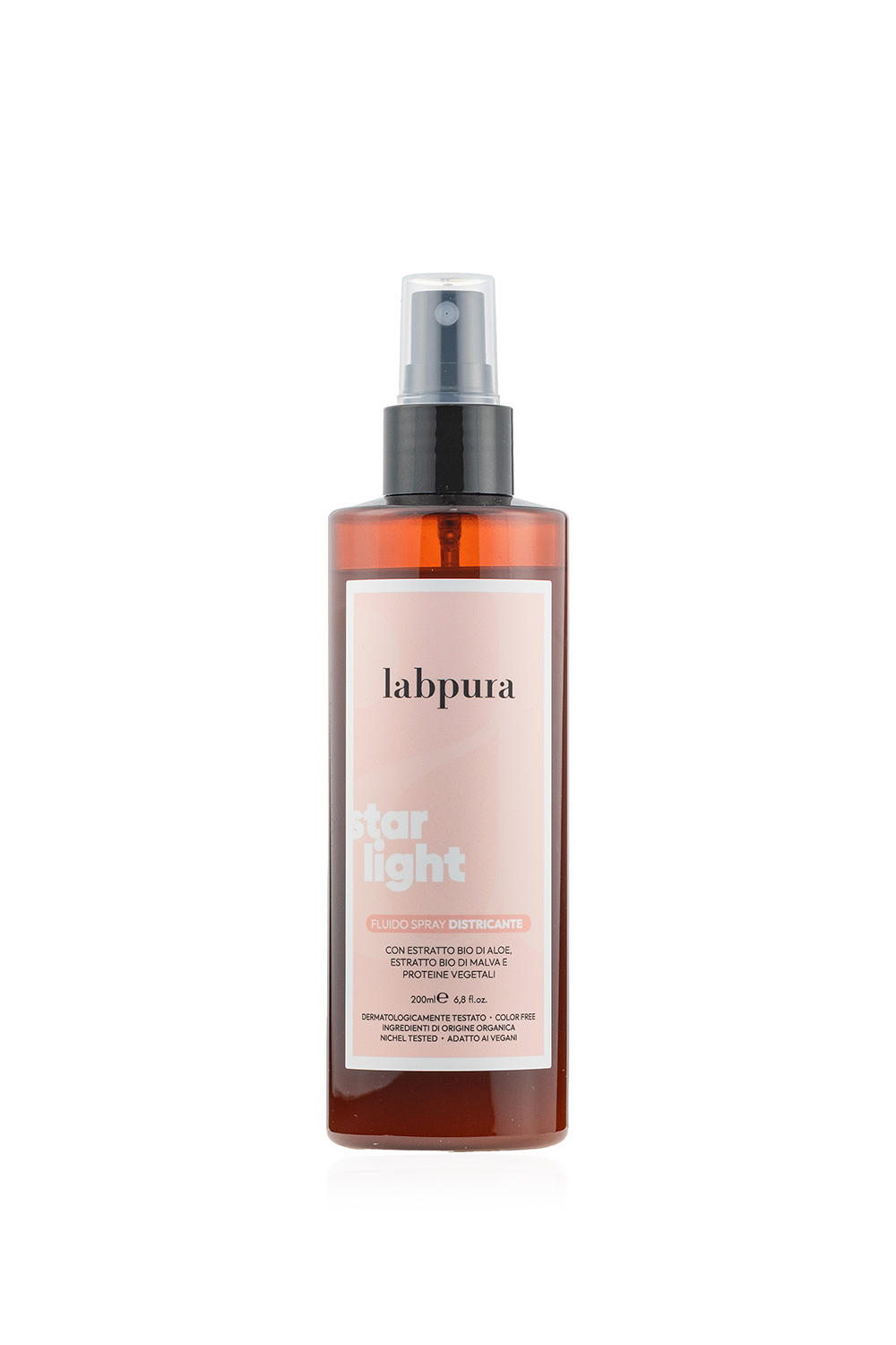 L’estratto biologico di aloe vera all’interno della formulazione dello Star light ha un’azione lenitiva e idratante. Ricco di mucopolisaccaridi, aminoacidi, vitamine: C, E, B1, B2, B6) e minerali, contribuiscono a migliorare l’elasticità delle lunghezze, facilitandone la pettinabilità. La sua azione filmogena protegge i capelli dal calore del phon.